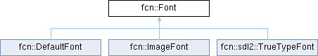 Implemented in fcn::DefaultFont, fcn::ImageFont, and fcn::sdl2::TrueTypeFont.